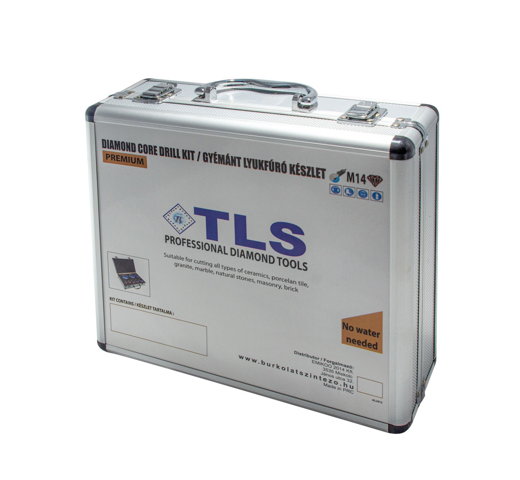 Lyukfúró, csiszolókorong és vágókorong tárolására alkalmas szivaccsal bélelt alumínium koffer.