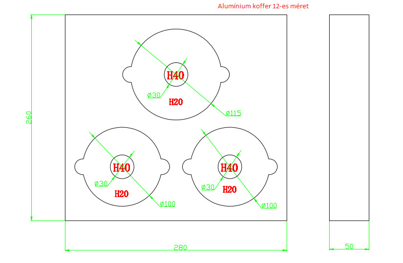 12-es koffer tárolásra alkalmas méretek: 1: Ø 100mm vagy Ø 30mm, 2: Ø 100mm vagy Ø 30mm, 3: Ø 115mm vagy Ø 30mm.